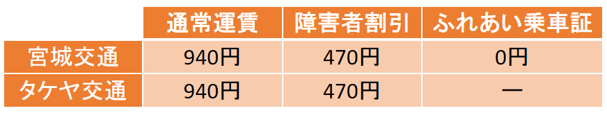 ちなみに、仙台駅から秋保温泉までバスに乗ると、下表の通り運賃がかかります。
