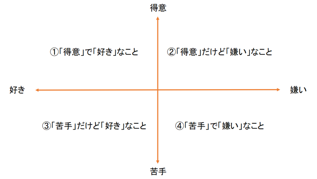 原因のひとつは、「得意なこと」と「好きなこと」がごちゃ混ぜになっていることです。