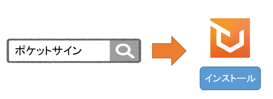 App Store(iOS)またはGoogle Play(android)で、「ポケットサイン」をインストールしましょう(無料)。