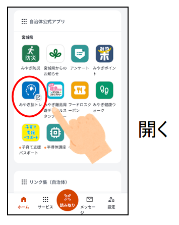 ③ホーム画面から、「みやぎ脳トレ」をタップ