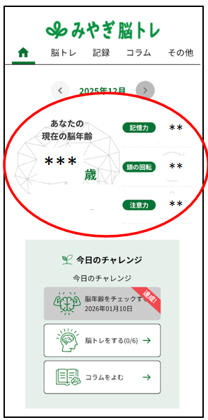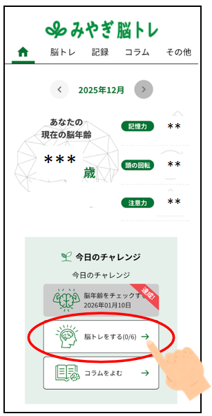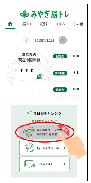 ⑦「脳年齢をチェックする」をタップ(月1回)