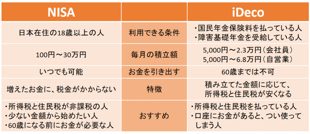 特にNISAは、証券会社によっては100円/月から始めることもできるので、収入が少ない人でも始めやすいですよ!