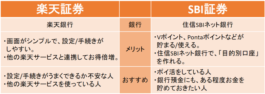 1.証券会社は、「楽天証券」か「SBI証券」がおすすめ。