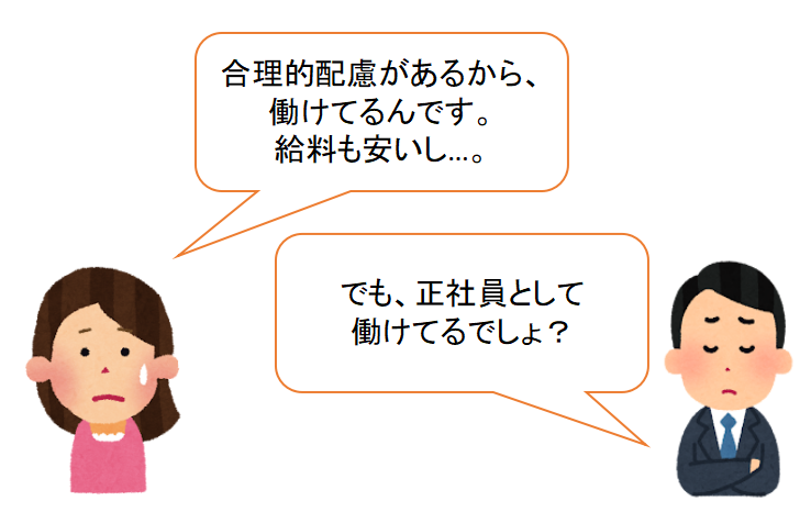提出する書類には、「仕事を続けるために、合理的配慮をしてもらっている」ということを書いていたのですが、「正社員」というポジションが高く評価されてしまったようです。