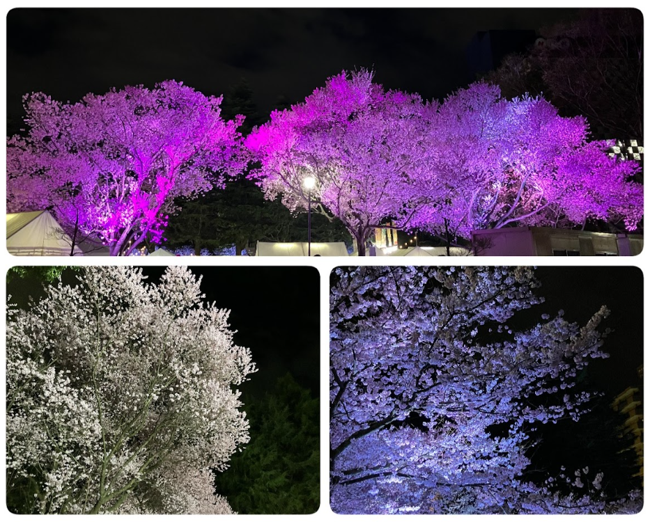 ライトアップされていて、昼の桜とは全然違う雰囲気でした。