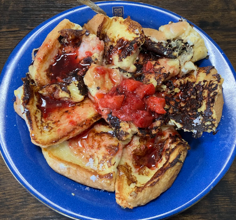 メープルシロップがなかったので、冷凍イチゴで作ったソースをかけて食べました。