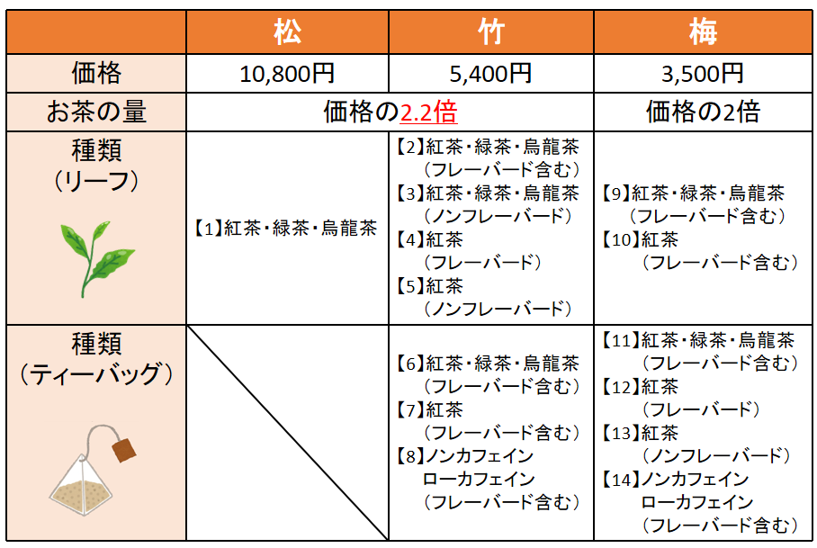 松・竹は、価格の2.2倍相当の値段の茶葉が入っており、梅(2倍相当)よりもお得感がありますね。