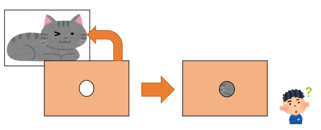 ①写真の上に厚紙をのせて、写真の一部だけを子供に見せる。