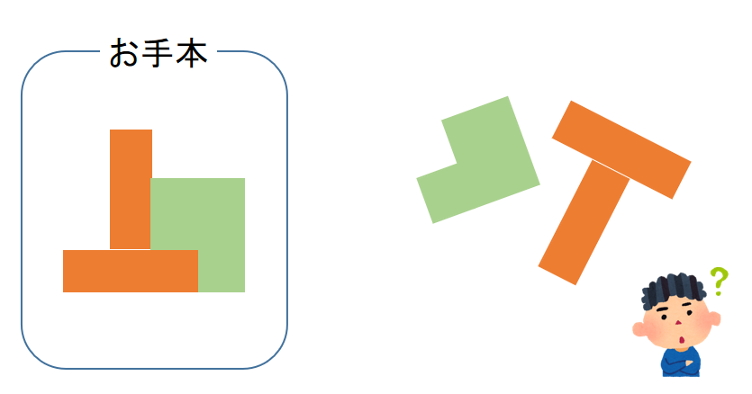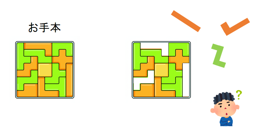 Level 2:大人が問題カードを作って、子どもは同じ形に並べる。